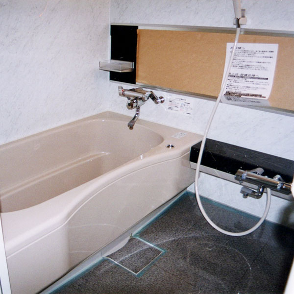 ご主人念願のゆったりバスは既存のものより2サイズアップを実現しました。足を伸ばして入れるお風呂にご家族も大満足!