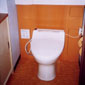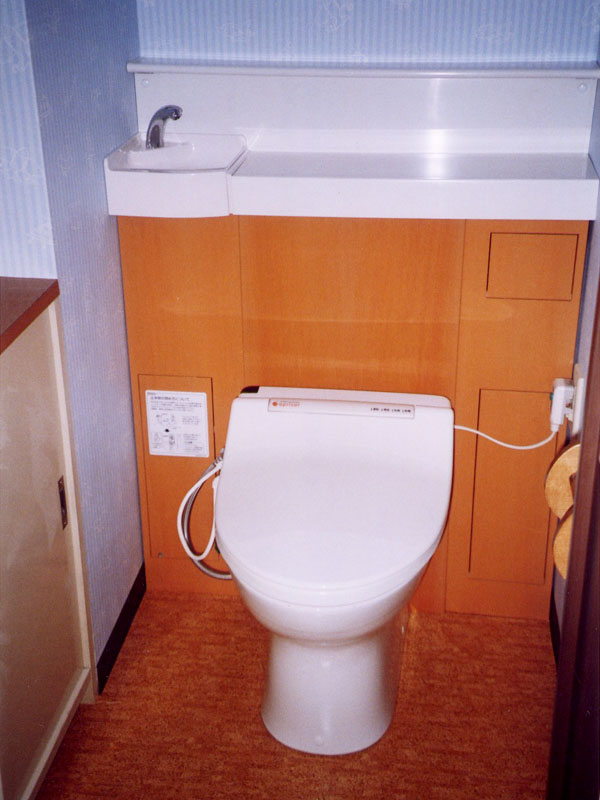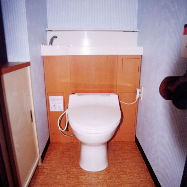 トイレはタンクや配線がキャビネットに隠れるタイプ。便器の向こうにホコリがたまらず、お洒落なだけではなくお手入れも楽々の優れものです。