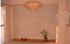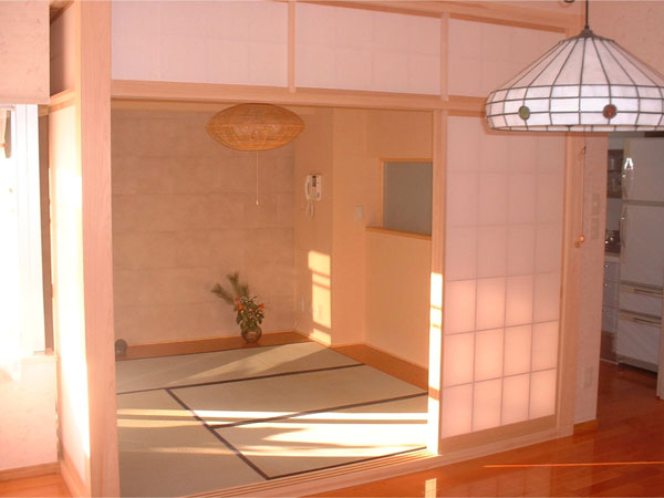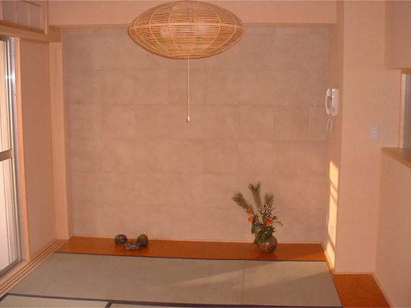 昼は、暖かい日差しと、独特の和室の雰囲気、畳のいぐさの香りで とても素敵な空間になりました。 また、湿度調節の為に、壁にはエコカラットと言うタイルを使用し、今まで冬場には窓に結露が起きていましたが まったく無くなりました。 インテリア性もグッとよくなりました。