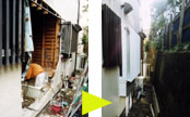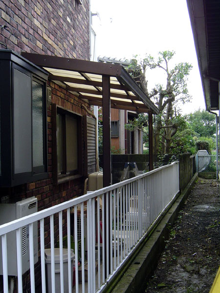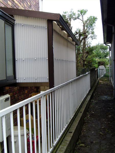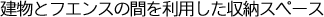フェンスと建物の間のちょっとした空間を有効活用して収納スペースを作りました。