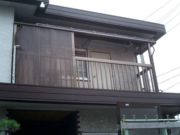 向かいにマンションが出来たため、目かくしをかねて既存のバルコニーにパネルを貼りました。また雨でも洗濯物を干せるので大満足。