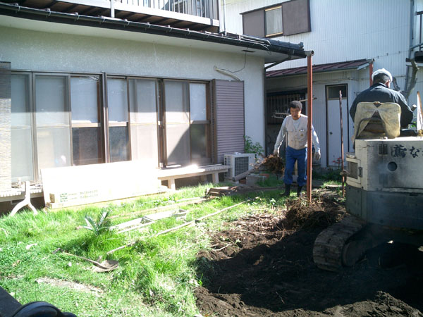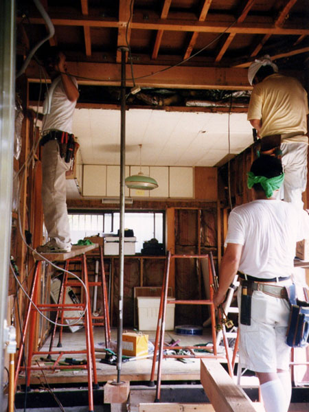 二つの部屋の間にある押入れを取り去っているところです。柱や壁を取ってしまうわけですが、梁を補強しているので安心です。