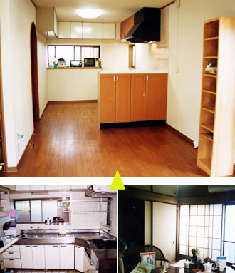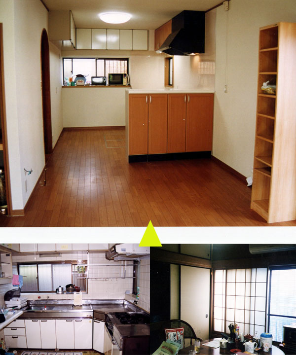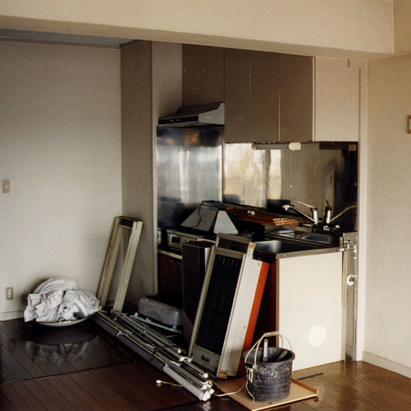 押入れの裏側(北)にあった「寒くて暗くて暑い」キッチン。こちら側へ来るにはドアを2つも通ってこなければなりませんでした。動線を良くするために思い切って押入れを壊すことにしました。