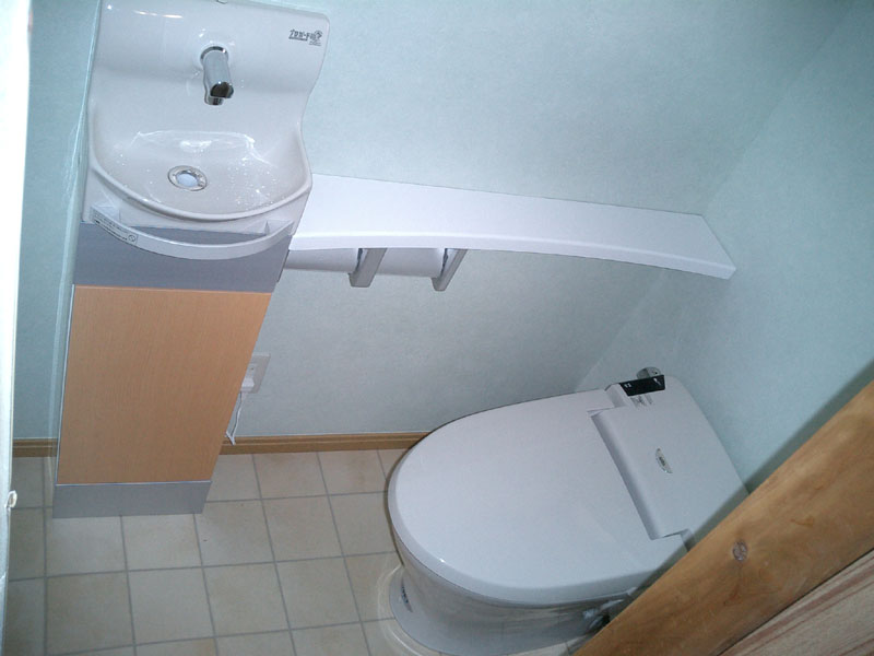 古くなった和式の便器を、足腰にも負担がかかるので洋式に変えました。タンクレスの便器に変えたので手洗いカウンターも付け、便器の向こう側へ手を伸ばす必要も無くなりグッと使いやすくなりました。