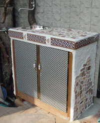 カウンターとサイドをタイルでデコレート。楽しい流しになりました。